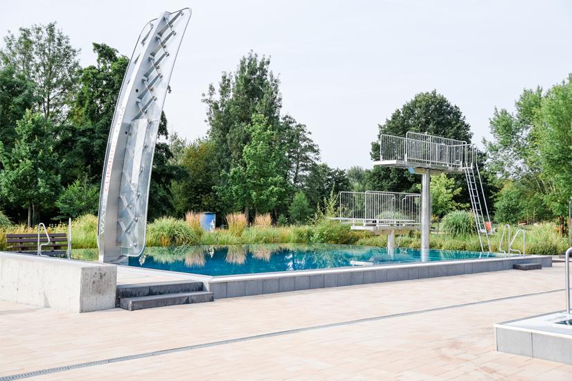 Das Freibad wurde 2012 saniert und ist auf dem neuesten Stand der Bädertechnik. Alle Becken sind aus Edelstahl. Die große Liegewiese verfügt über einen abgeteilten FKK Bereich mit Grillmöglichkeit. Für Sportbegeisterte sind Tischtennisplatten und ein Beachvolleyballfeld vorhanden. Außerdem kann eine direkt angrenzende Minigolfanlage während des Schwimmbadbesuches in ihre Aktivitäten mit integriert werden (direkter Zugang). Das Schwimmbad verfügt über kostenfreies WLAN, abschließbare Garderobenschränke und Umkleidekabinen auf den Liegewiesen. In der Nähe des Kleinkindbereiches stehen Strandkörbe auf der großen Sandfläche die kostenlose genutzt werden können. Außerdem sind im Kleinkindbereich einige festinstallierte große Sonnenschirme vorhanden. Sonnenschirme können darüber hinaus (soweit der Vorrat reicht) beim Bademeister angemietet werden. Die große Liegewiese verfügt über einen sehr guten Baumbestand, so dass auch an heißen Tagen viel natürlicher Schatten zur Verfügung steht. Verpflegungsmöglichkeit bietet ein Kiosk mit Sonnenterrasse. Außerdem ist ein fest installierter Grill auf der großen Liegewiese vorhanden der genutzt werden darf. Ganz neu ist ein Eisautomat für regionales Eis auf Knopfdruck.
